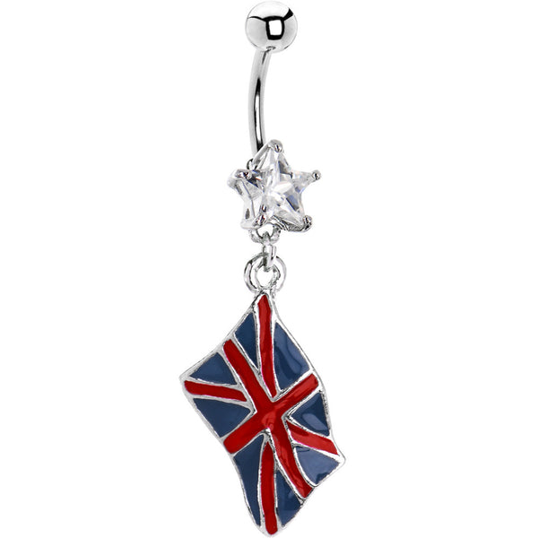 Flag of United Kingdom belly ring. 316L surgical steel and star gem belly ring with epoxy "Flag of United Kingdom" dangle.