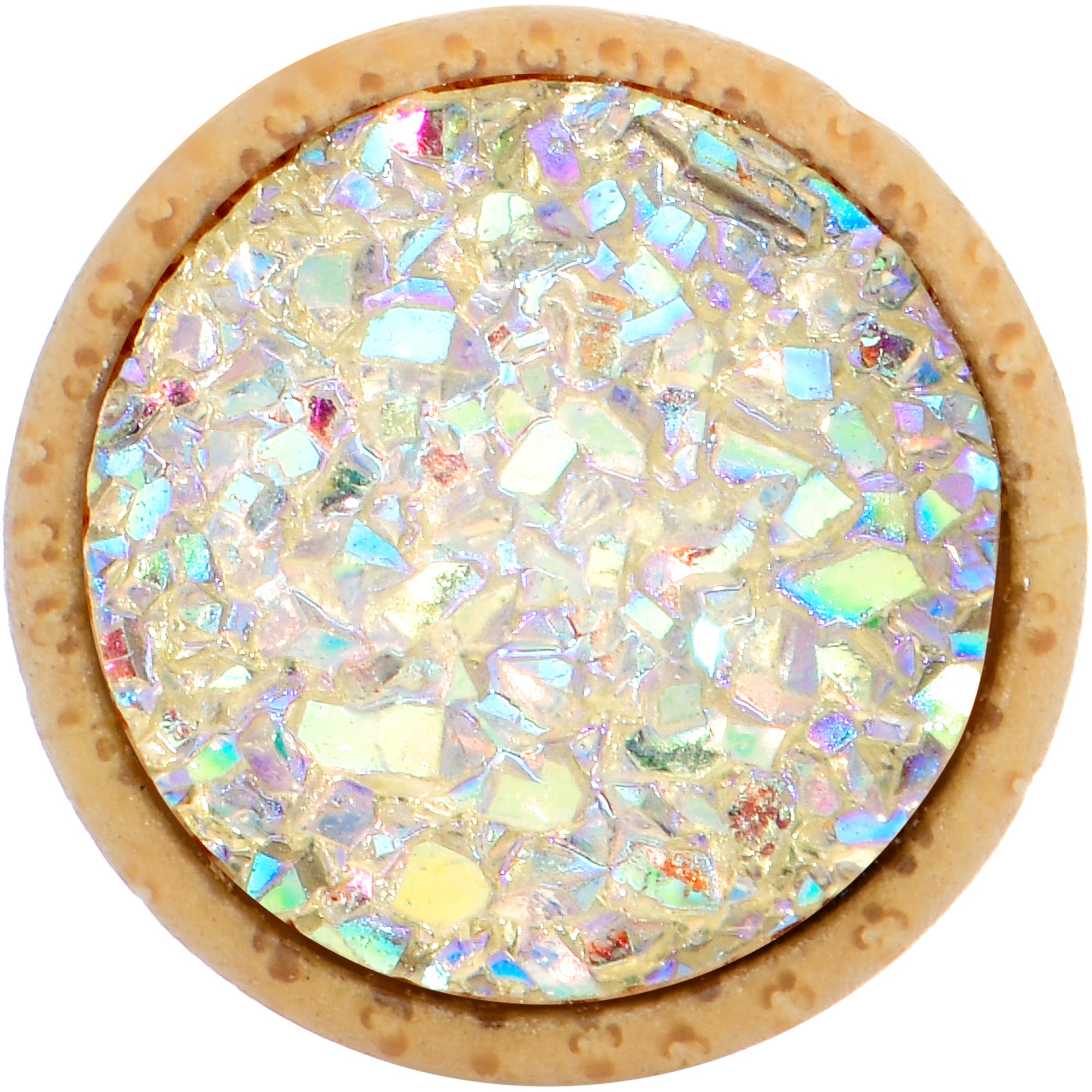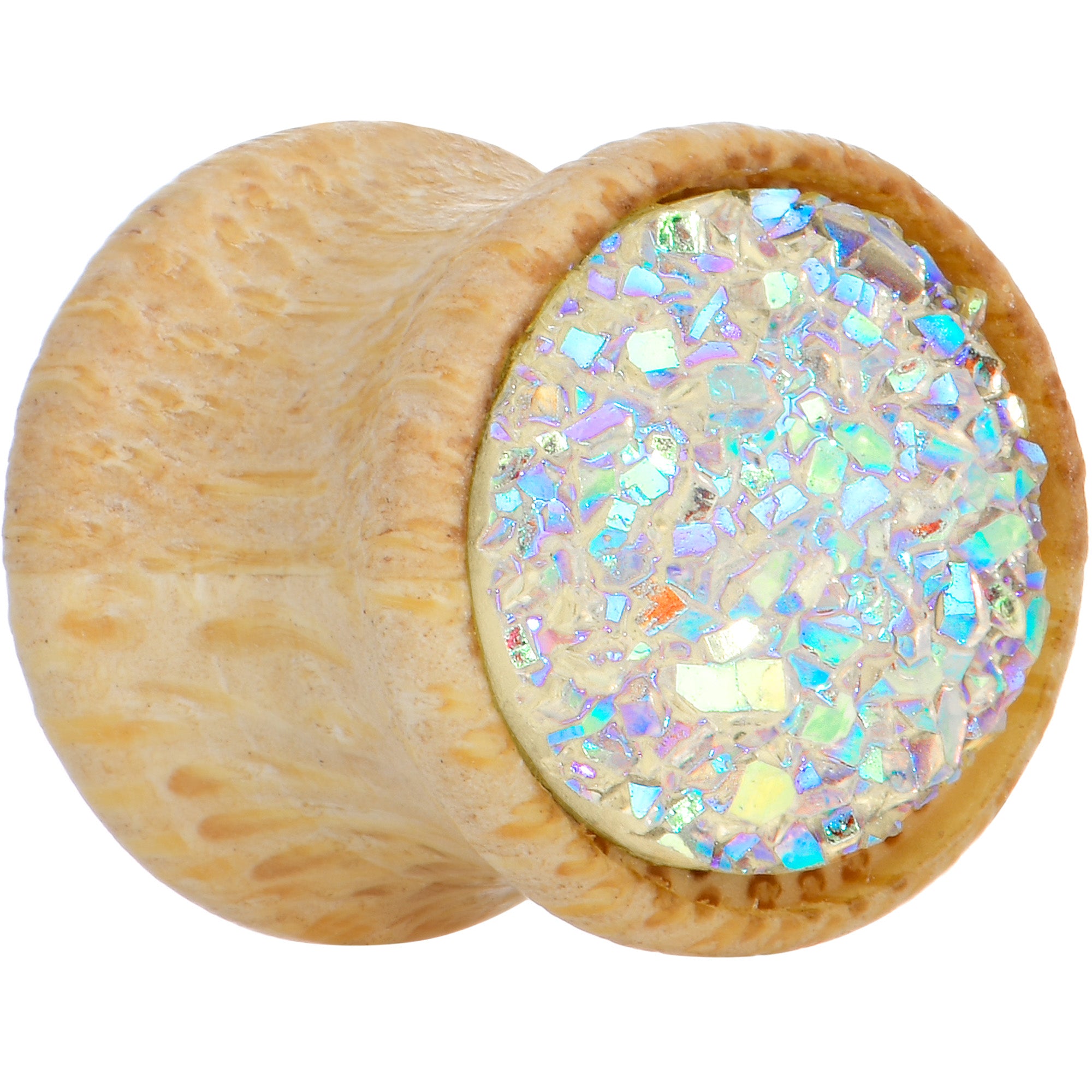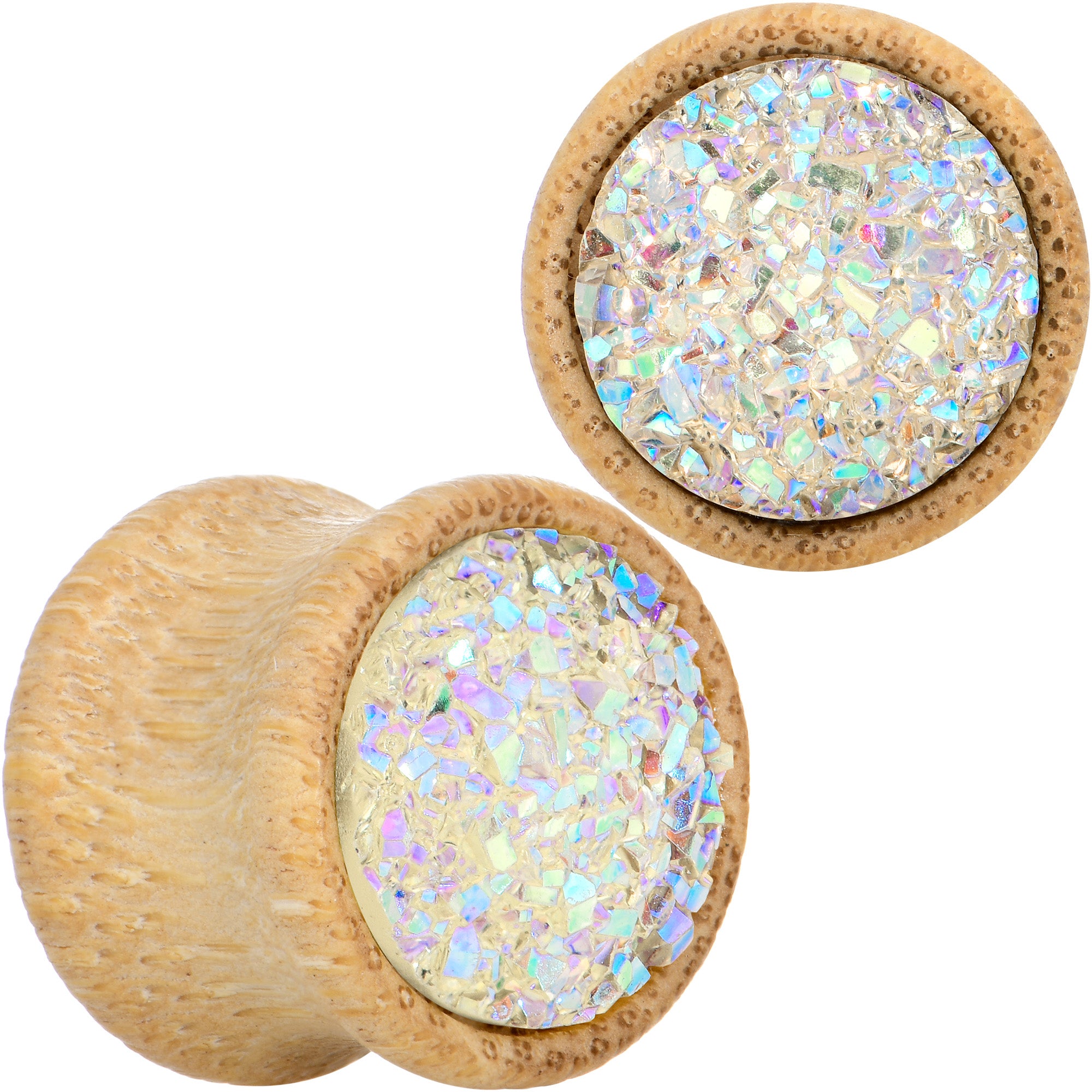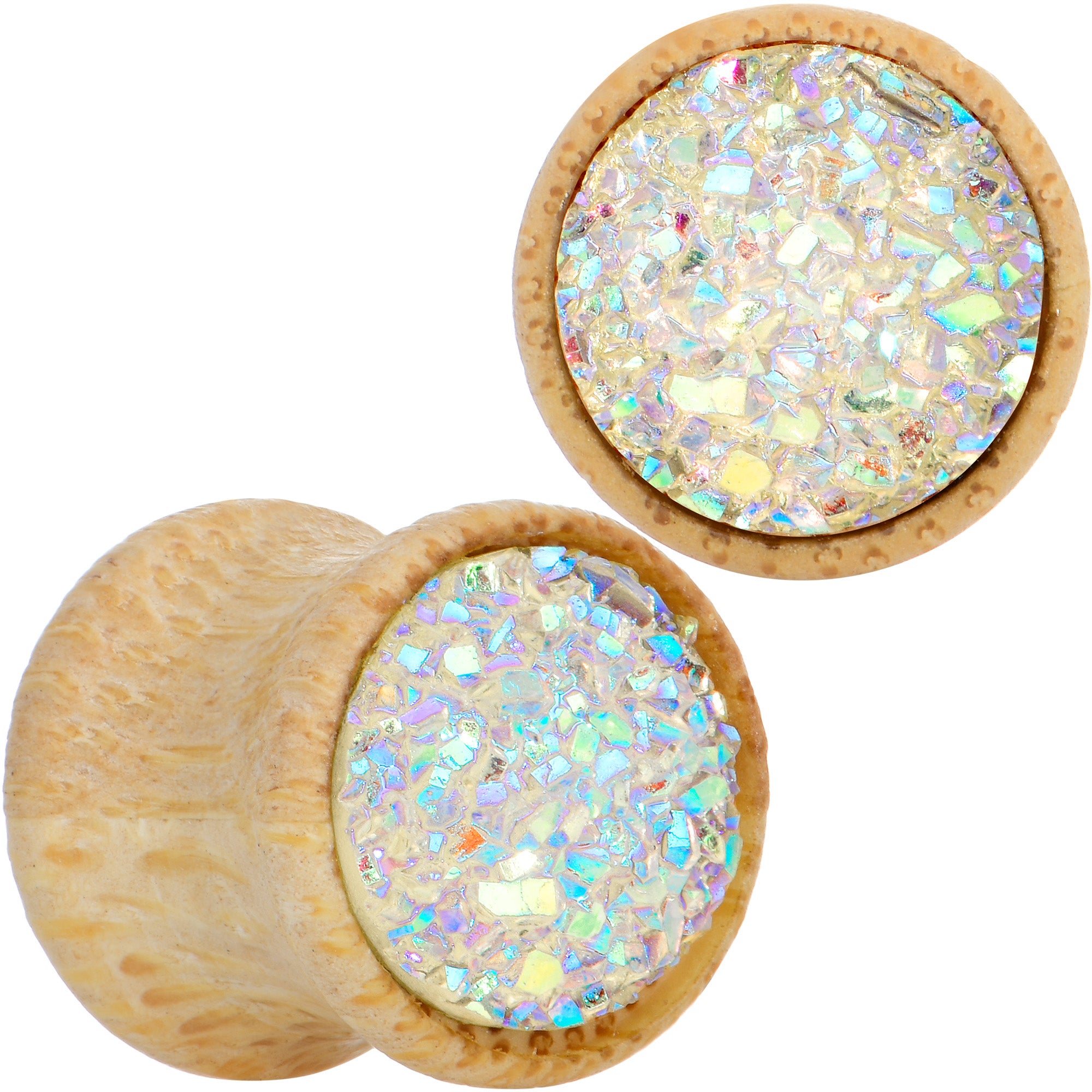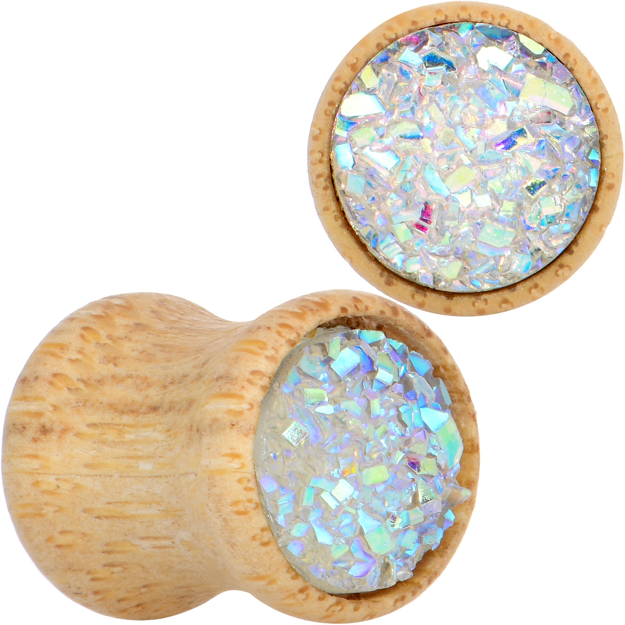 Looking natural doesn't mean plain if you're rocking these 10mm plugs for your stretched lobes! They're made with wood for lightweight wear and have a saddle design to make insertion and removal more comfortable. The front end features white druzy stone for a look that has eye-catching glamour while keeping your look au naturale! You can't help but love Mother Nature when you're rocking these charmingly earthy saddle plugs! Sold as a set of two.