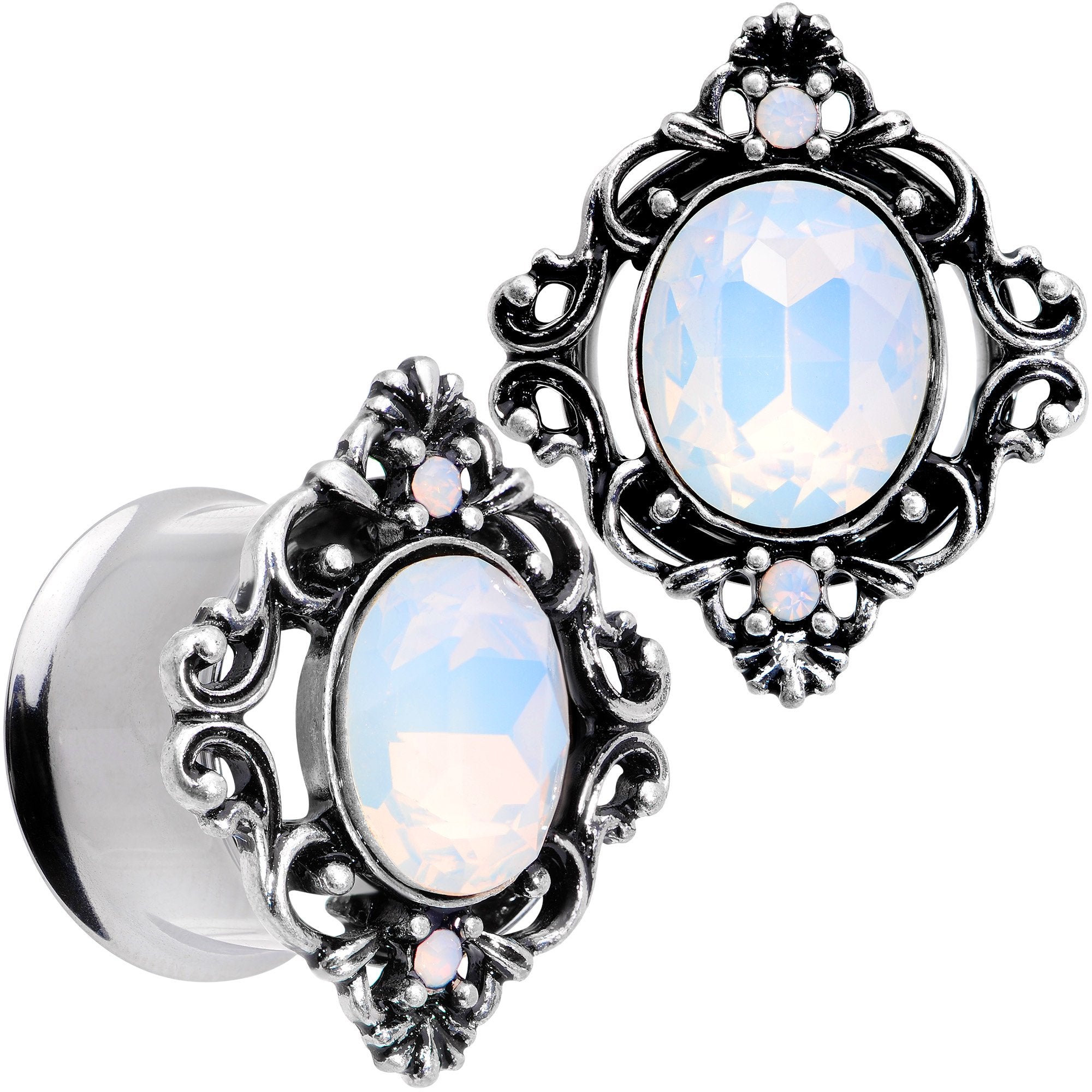 White Gem Victorian Era Double Flare Plug Set Sizes 6mm to 16mm