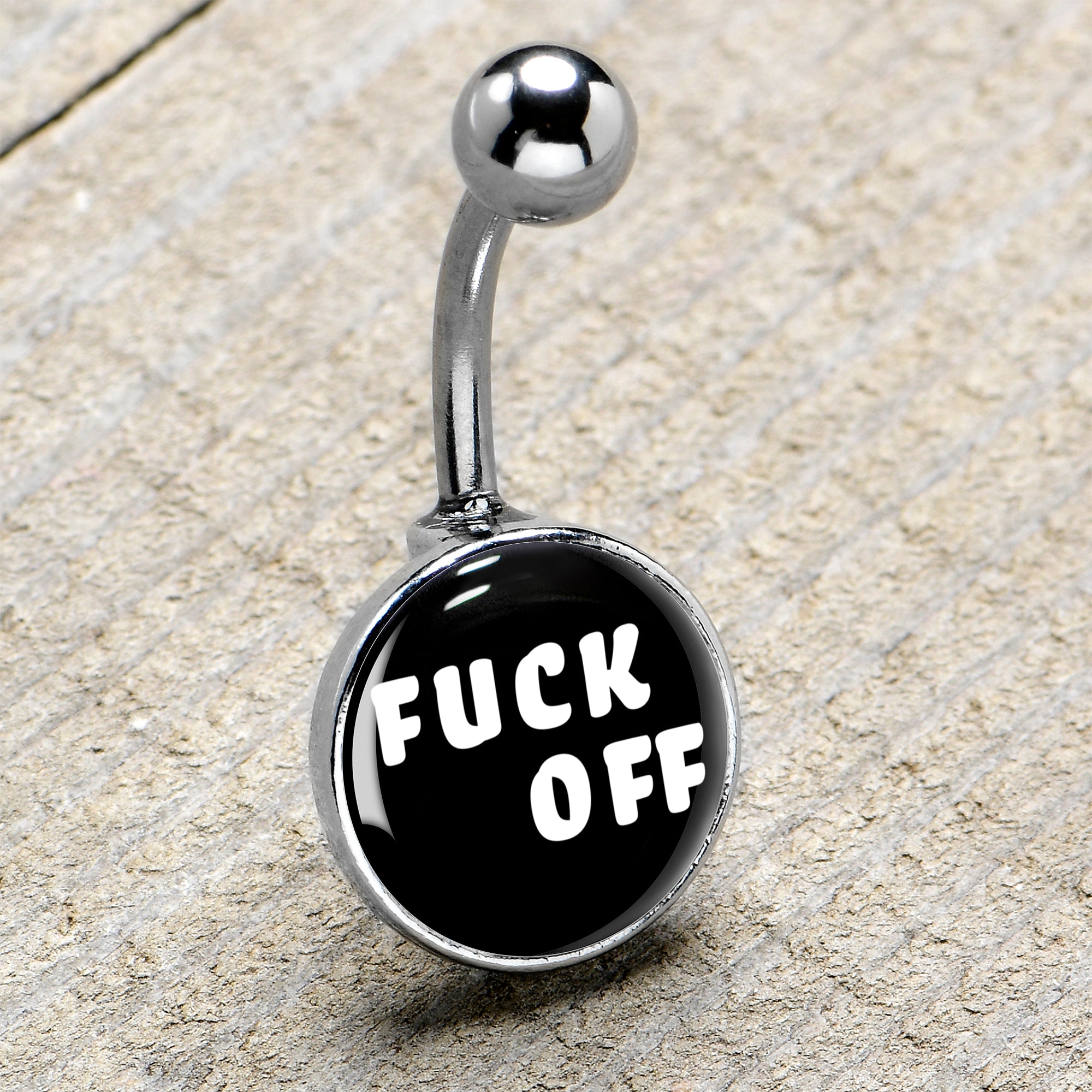 Hypoallergenic belly ring for sensitive skinWhite Letters Fuck Off Belly Ring