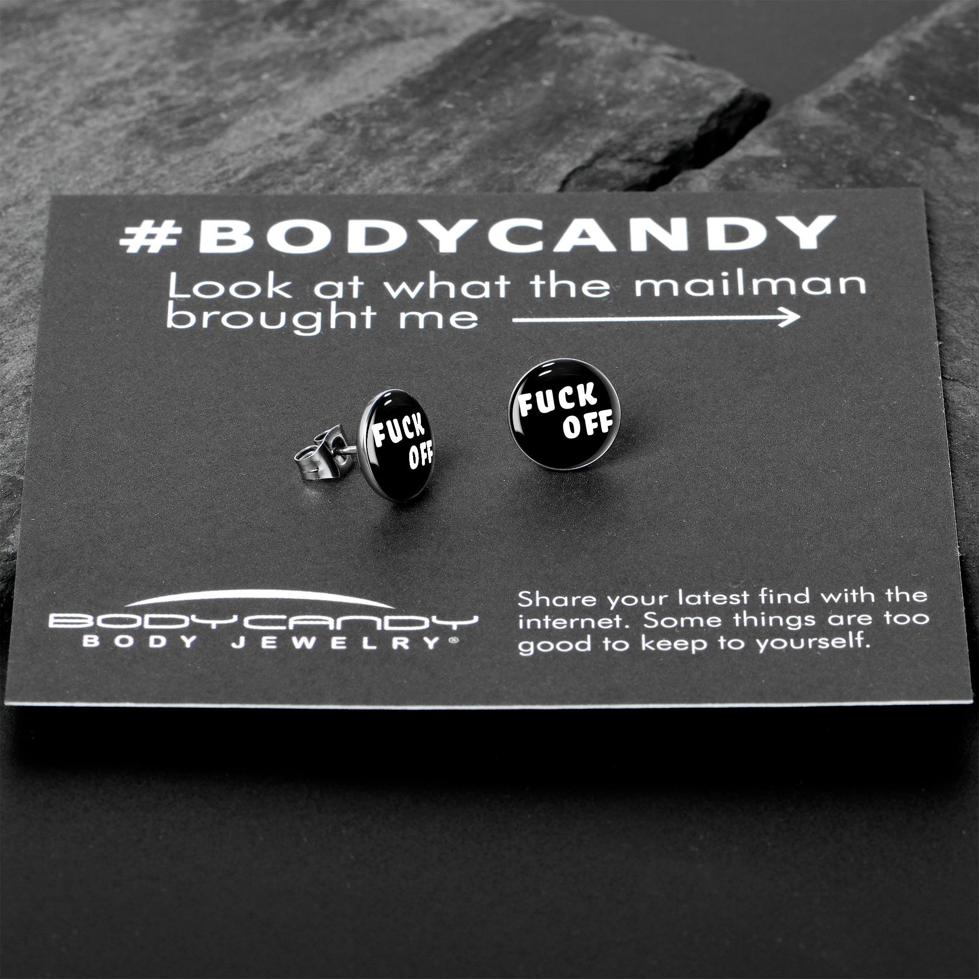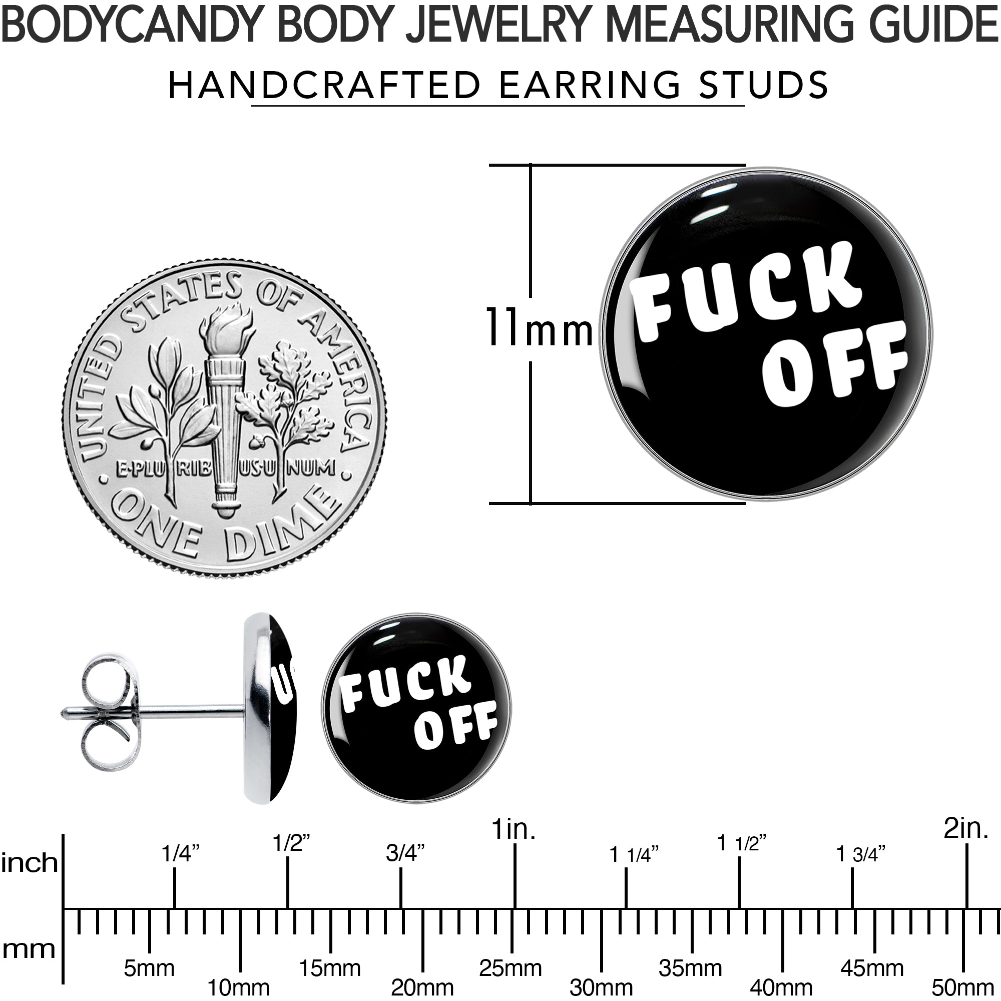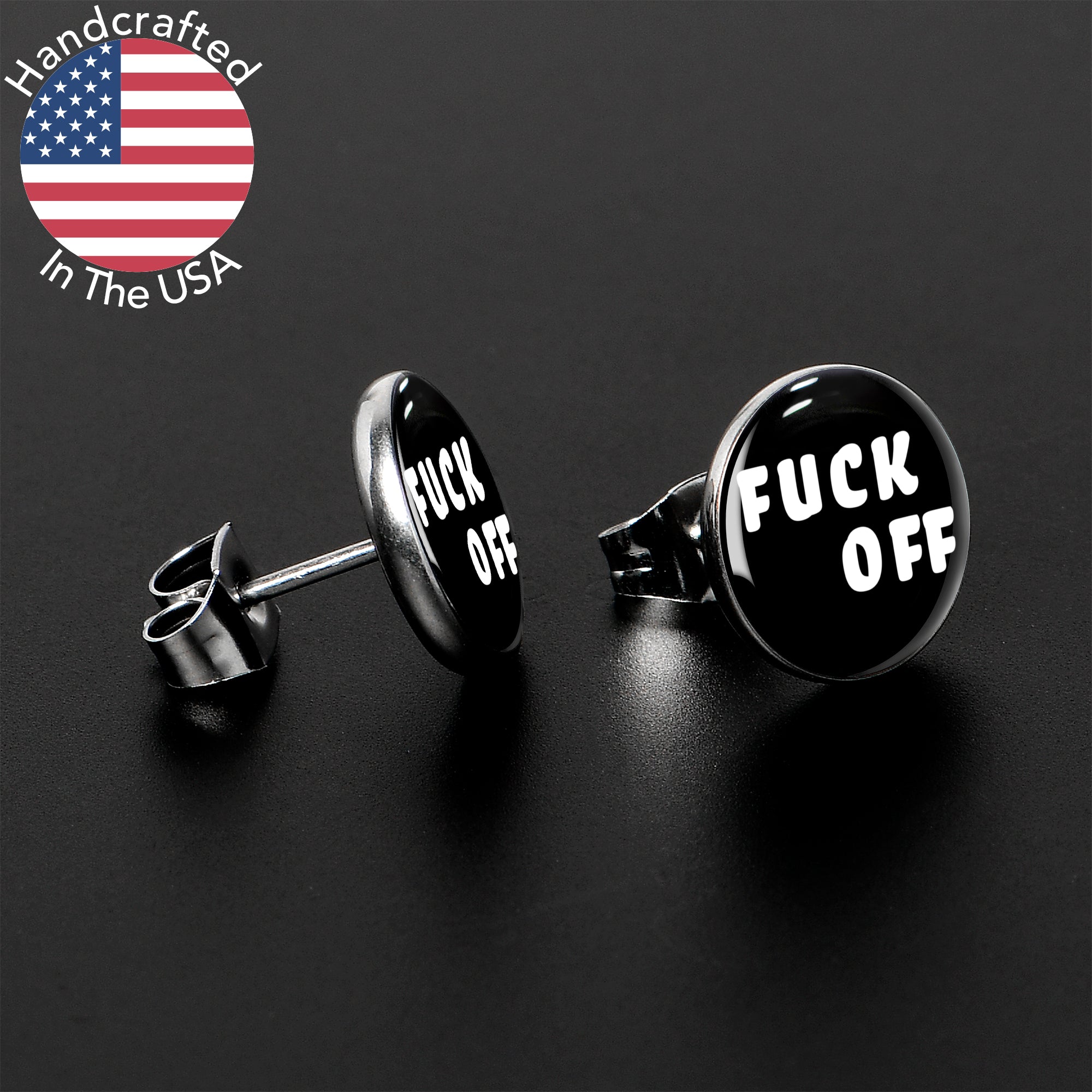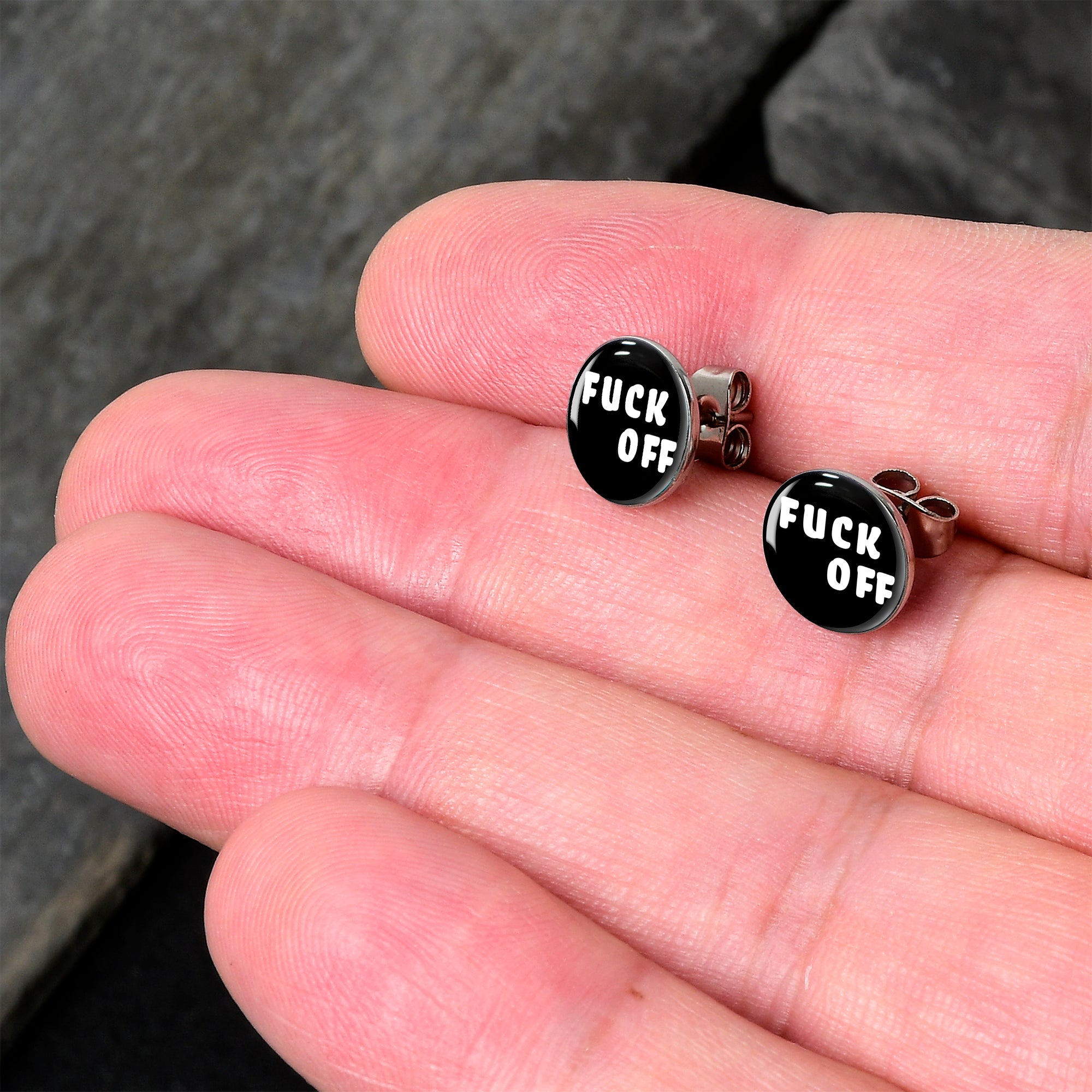 White Letters F*ck Off Hypoallergenic Stainless Steel Stud Earrings