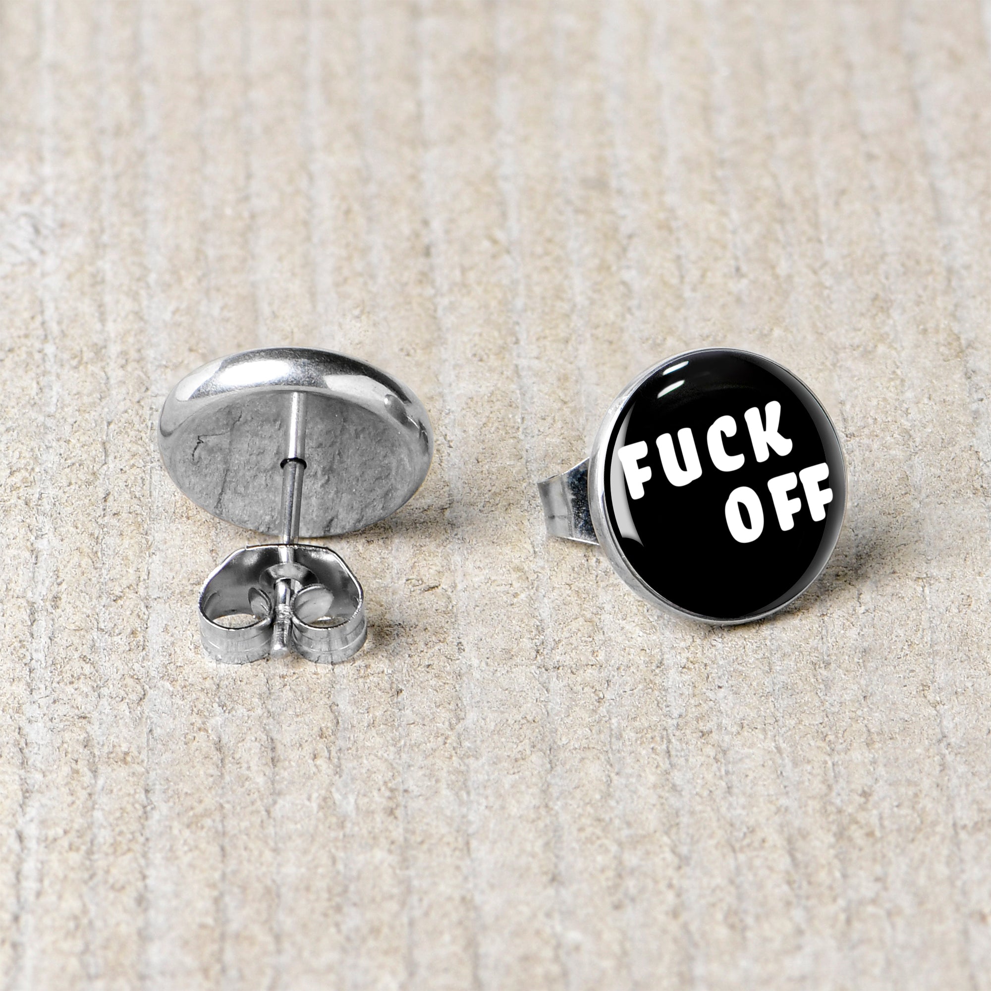 White Letters F*ck Off  Stainless Steel Stud Earrings perfect for sensitive ears