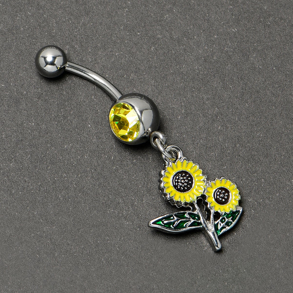 Yellow Gem Cheery Inlay Sunflowers Dangle Belly Ring