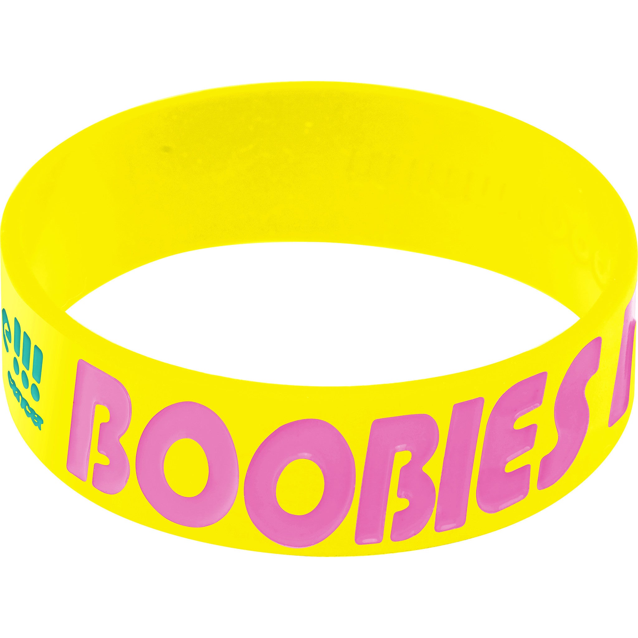 Yellow Pink Boobies Rock Breast Cancer Bracelet