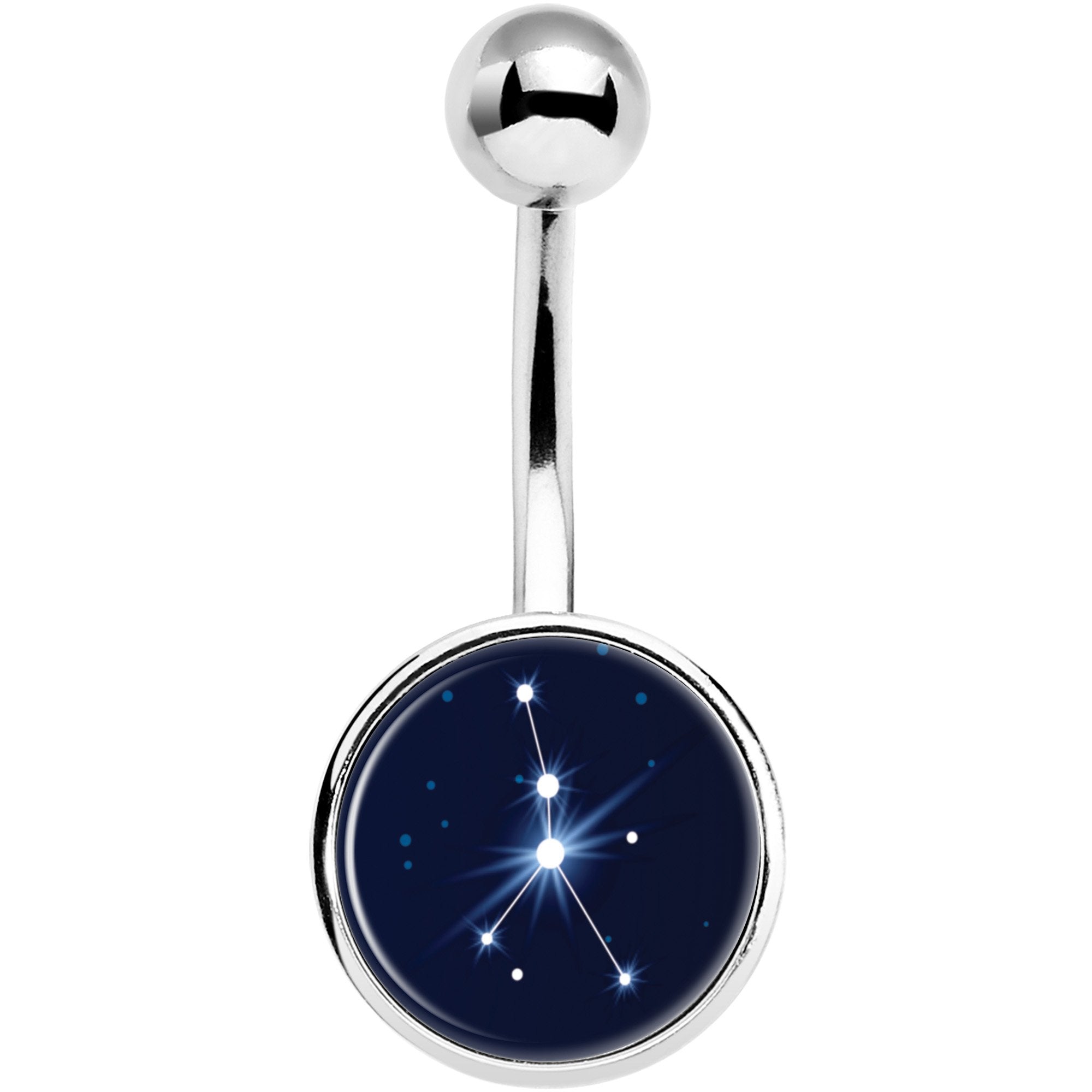 If you know all about your zodiac constellation and are all Cancer at heart then this navel jewelry is right for you! Made with a 7/16" durable 316L surgical grade stainless steel curved barbell, this belly button ring features the constellation Cancer on a black background logo inlay.